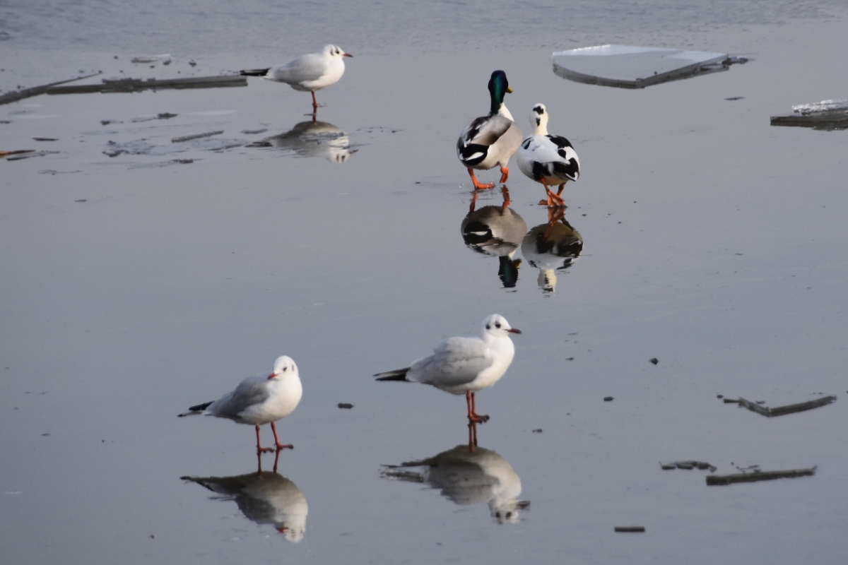 ....samen gleden ze in het water.