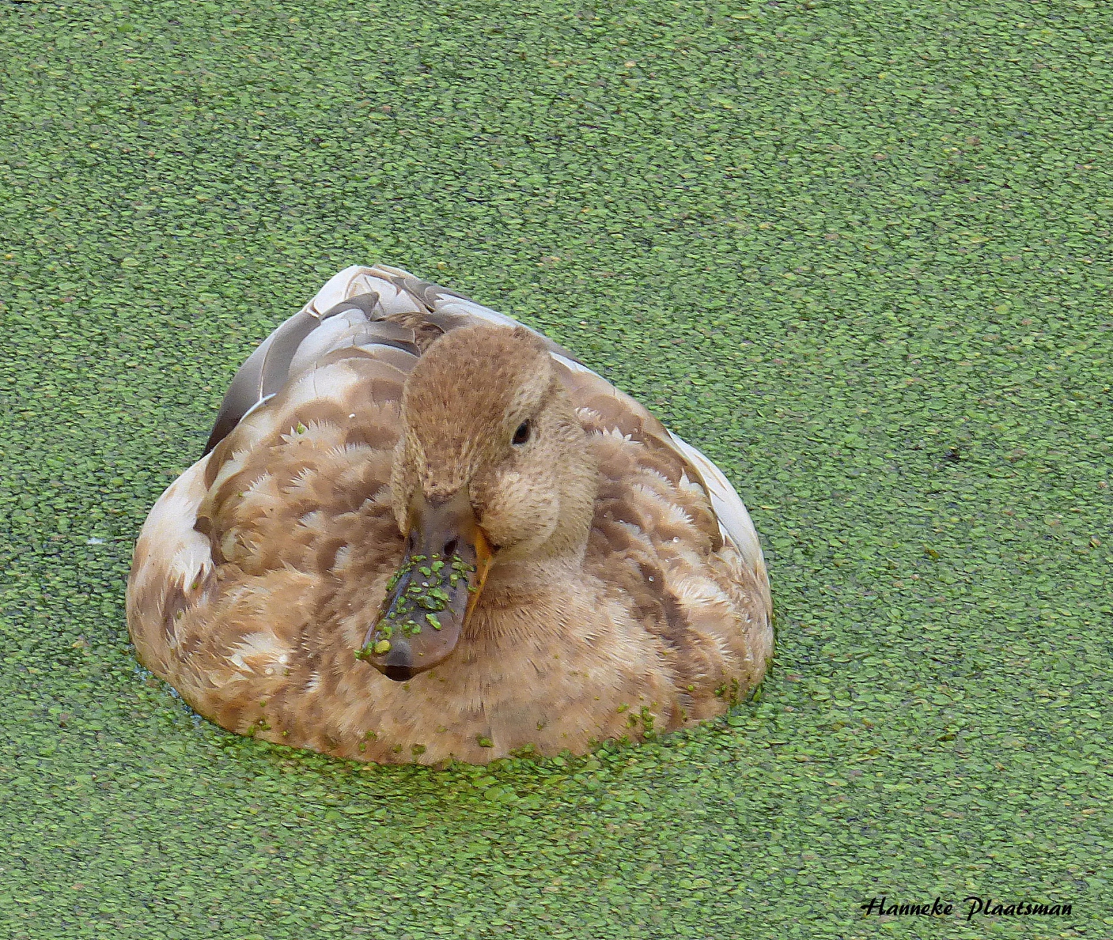 Deze eend viel mij op tussen de andere eenden door die hele lichte kleur.