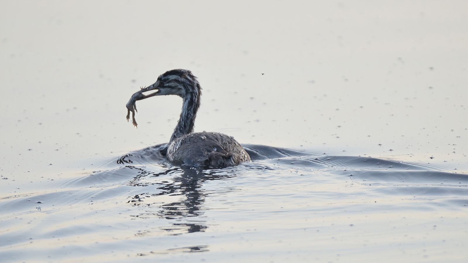 De jonge Fuut gaat het wel redden, knappe vangst !!