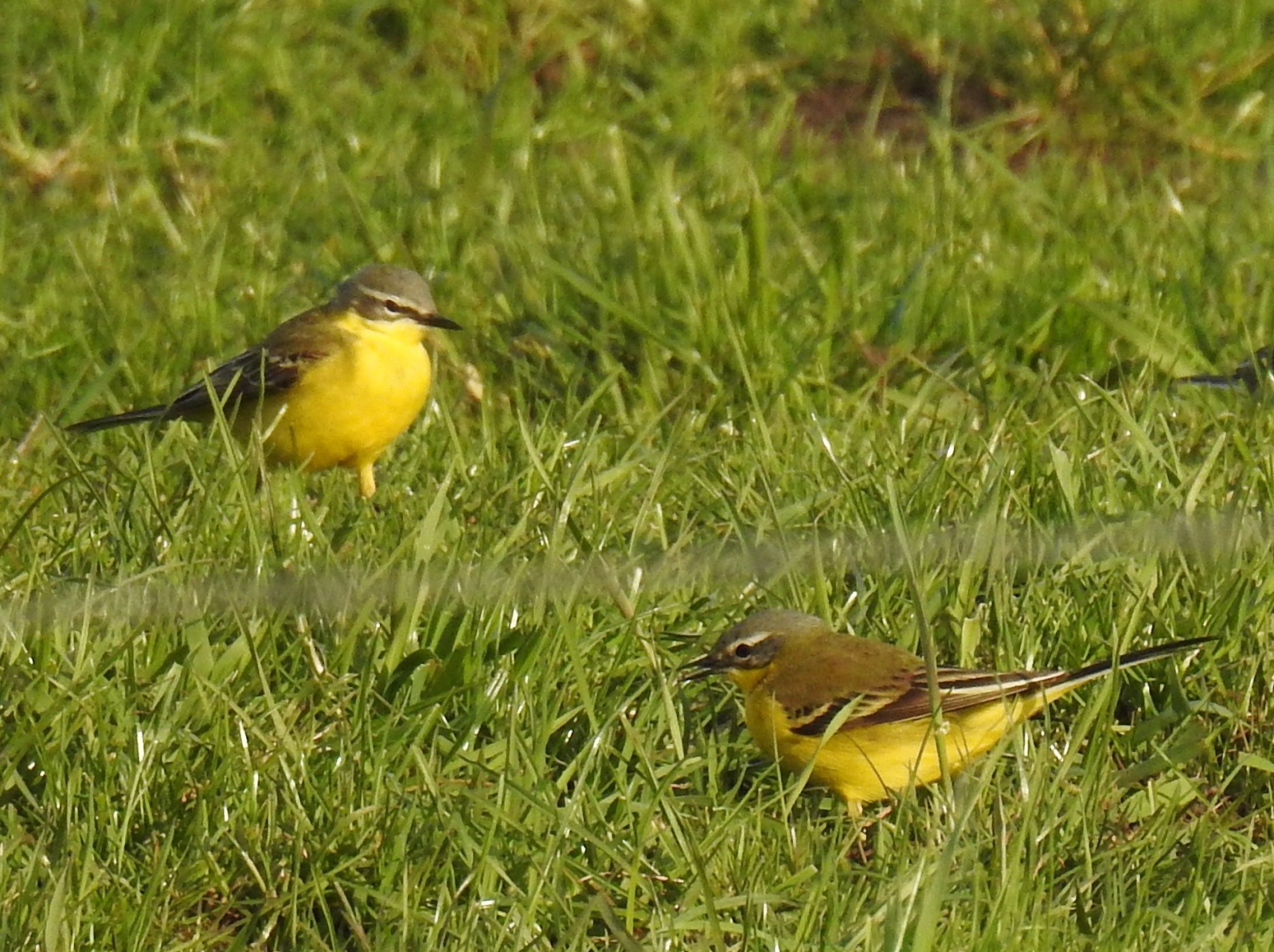 Gele kwikstaartjes in het gras