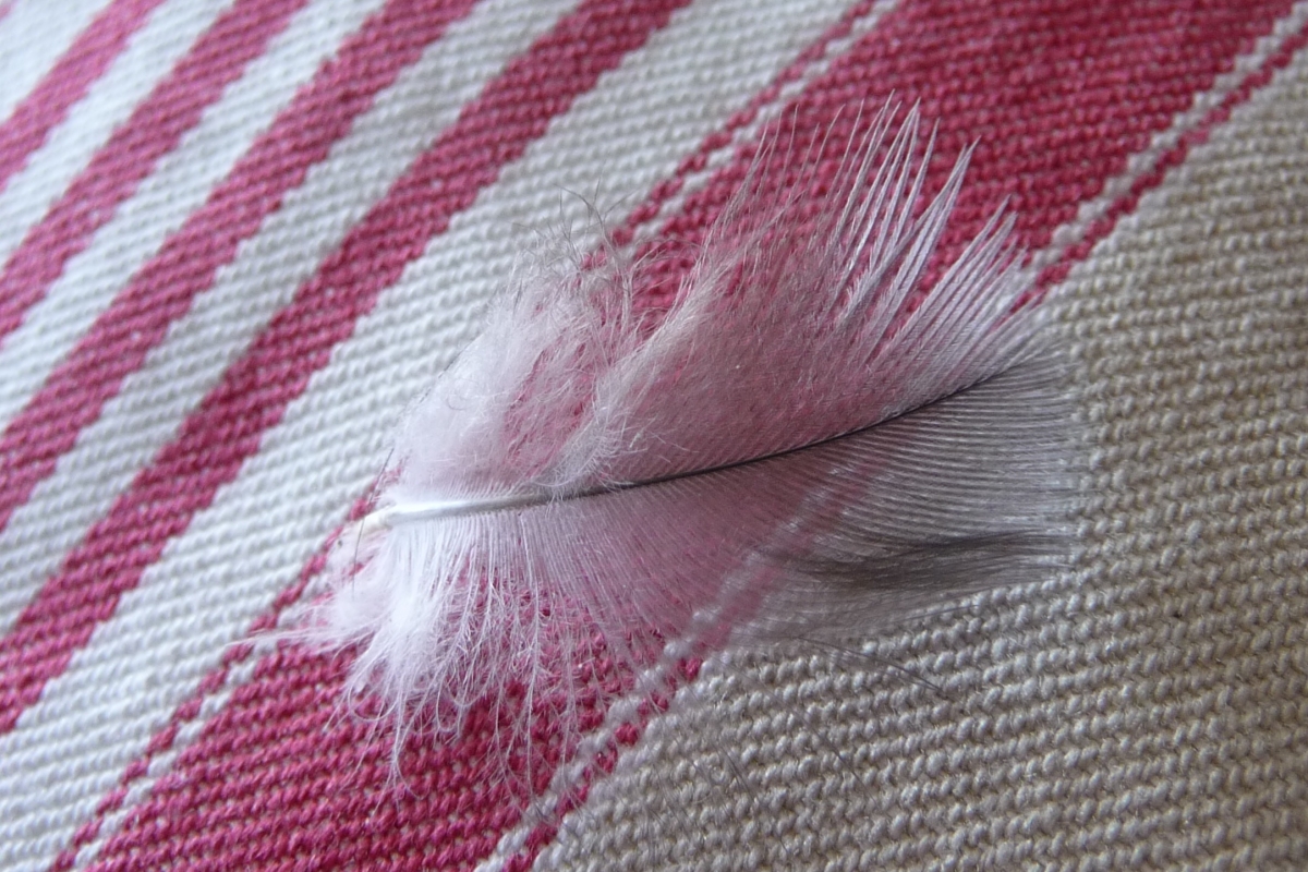 Dit klein veertje dwarrelde op een kussen vanmorgen, geluk?