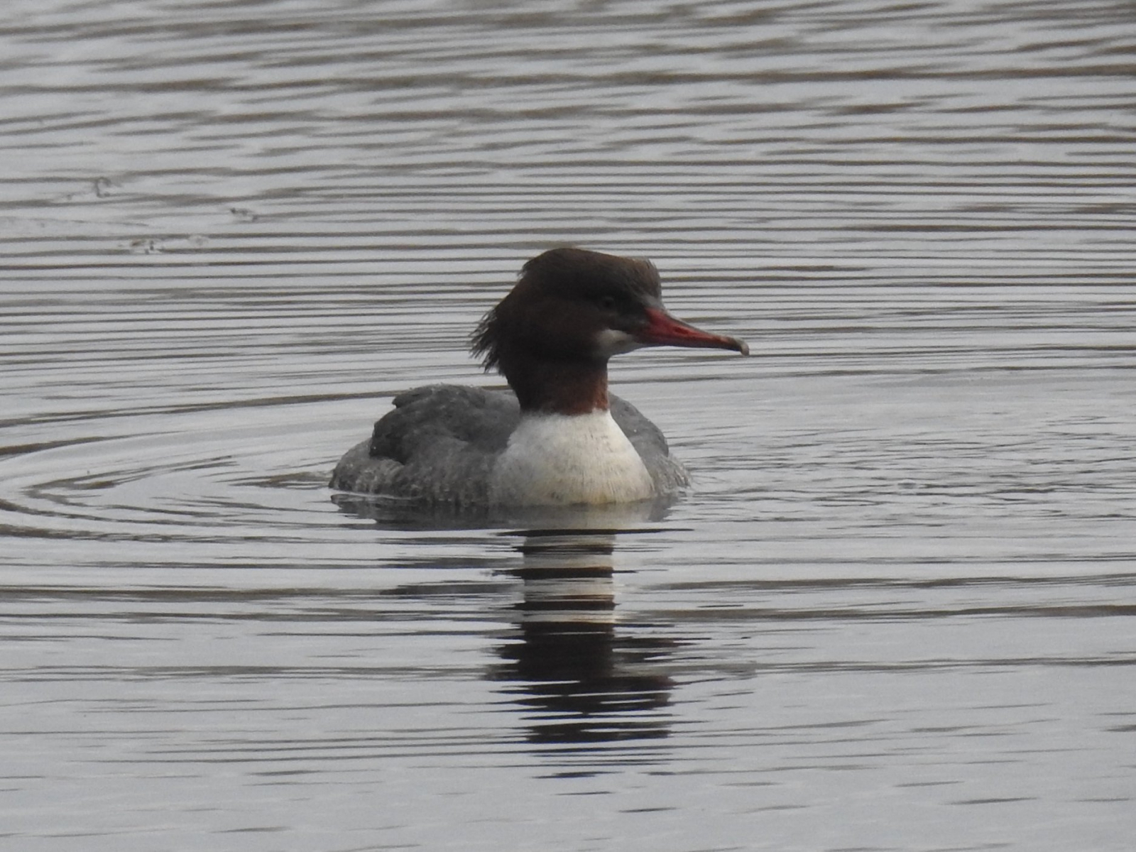 De Grote zaagbek is een duikeend net als bv de kuifeend. Andere eenden grondelen als ze naar voedsel zoeken. Het gaat hier om een vrouwtje .