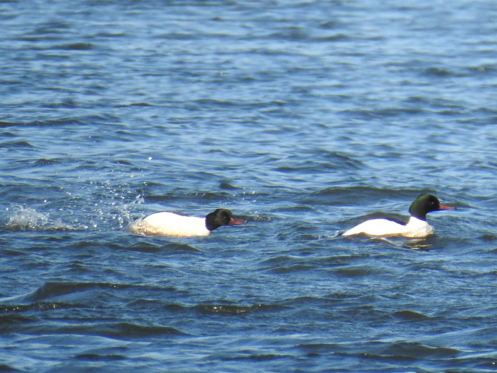 Grote zaagbekken hebben een slank, gestroomlijnd lichaam. Ze kunnen uitstekend vliegen, ondanks hun kleine vleugels en zwaar lichaam. De lange smalle snavel heeft gezaagde randen, vandaar de naam. Vrouwtjes zijn grijs met bruin, met een roodbruine kop, mannetjes bleekroze met een zwarte rug en een groene kop.
