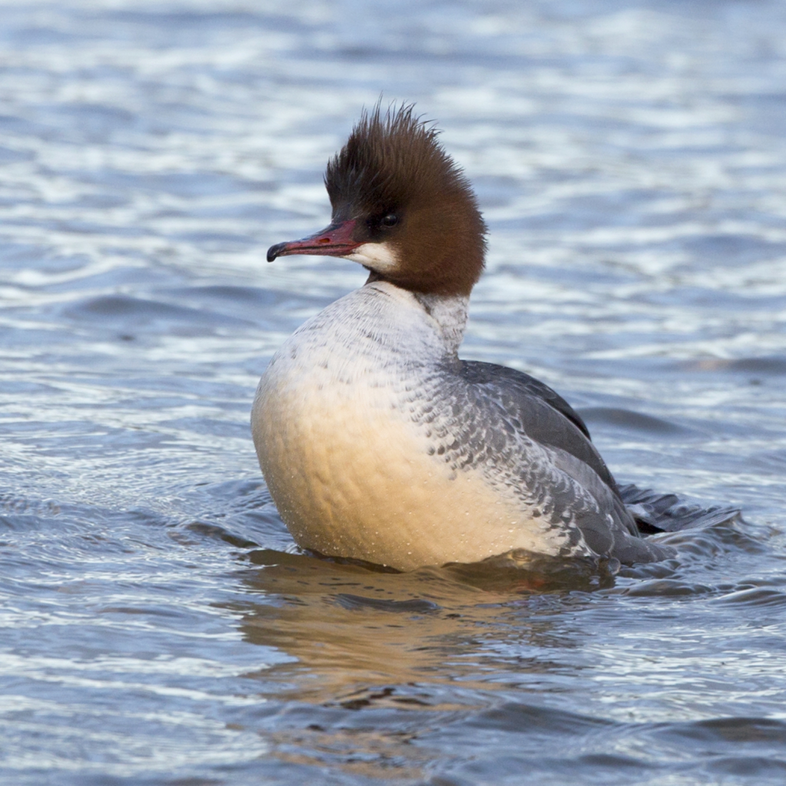 Grote Zaagbekken worden ook wel aangeduid als Boterbuik... Deze dame toont even vol trots haar bolle buik...
