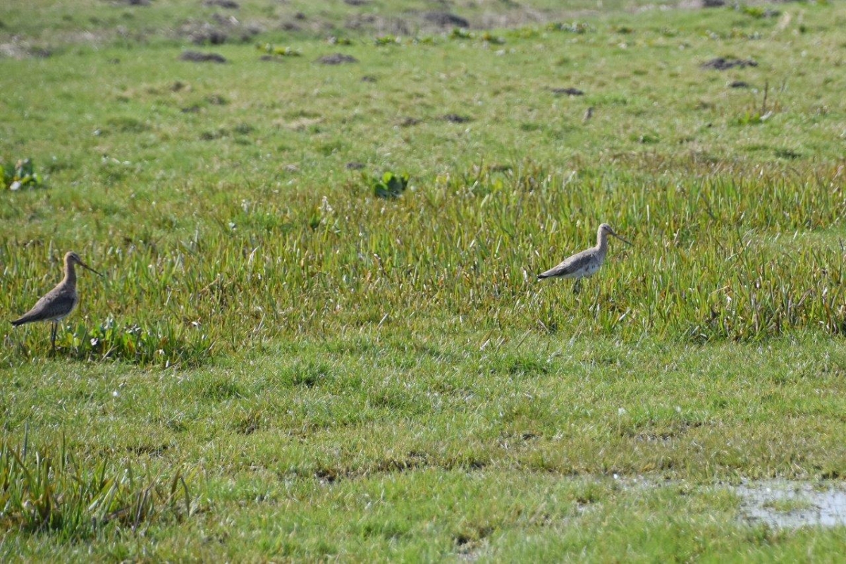 Veel grutto's in de polders bij Eemnes, ze liepen ook tussen de vele ganzen!