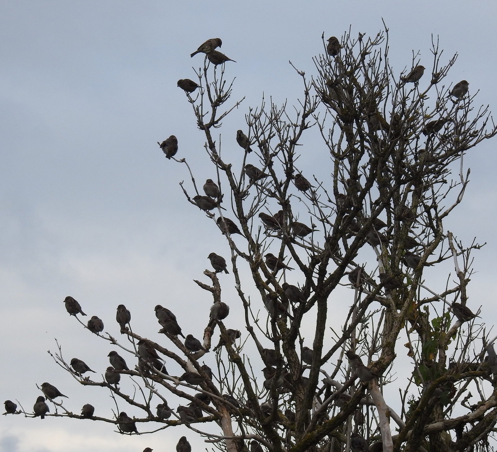 Leuk, een boom vol Mussen, ik heb ook soms wel zo'n 20 Husmussen in mijn tuin.