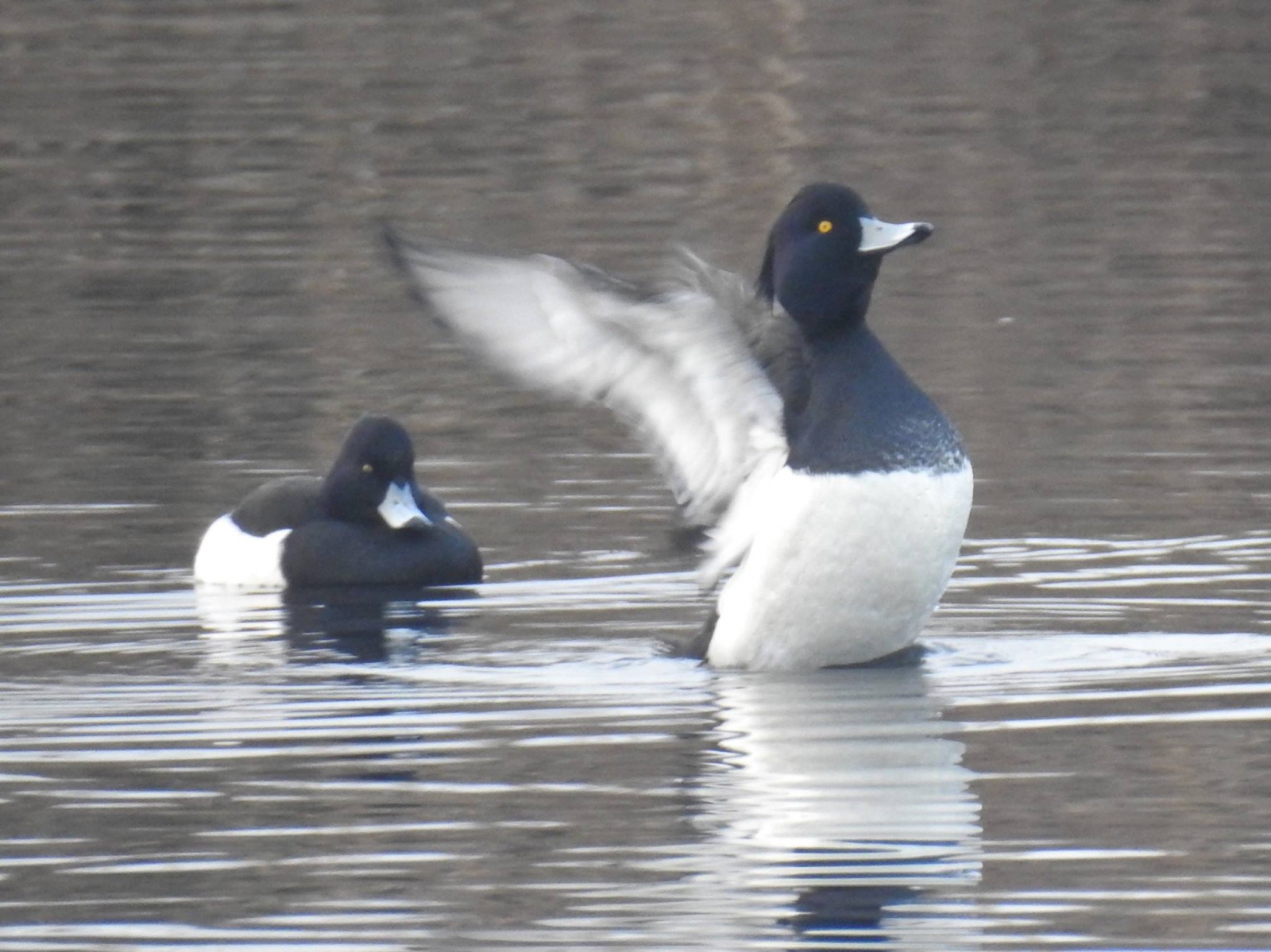 De kuifeendman lijkt op afstand op de tafeleendman . Beide zijn in het midden wit van kleur. Maar de kuifeend heeft een zwarte kop en de tafeleend donkerrood. Maar van veraf is dat al lastig te beoordelen.