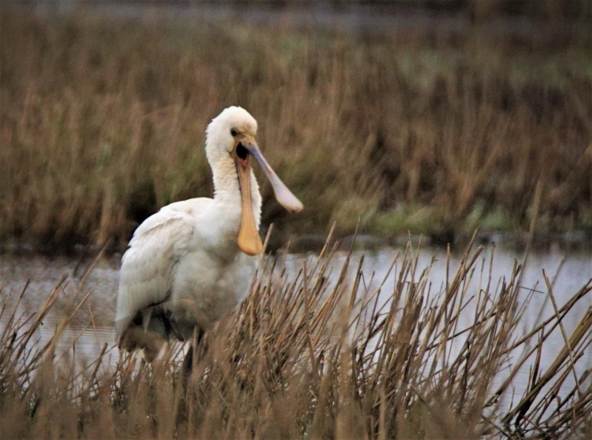 De jonge lepelaar staat flink te gapen van de slaap of van de honger ik denk het laatste wan er was voldoende voedsel te vinden.