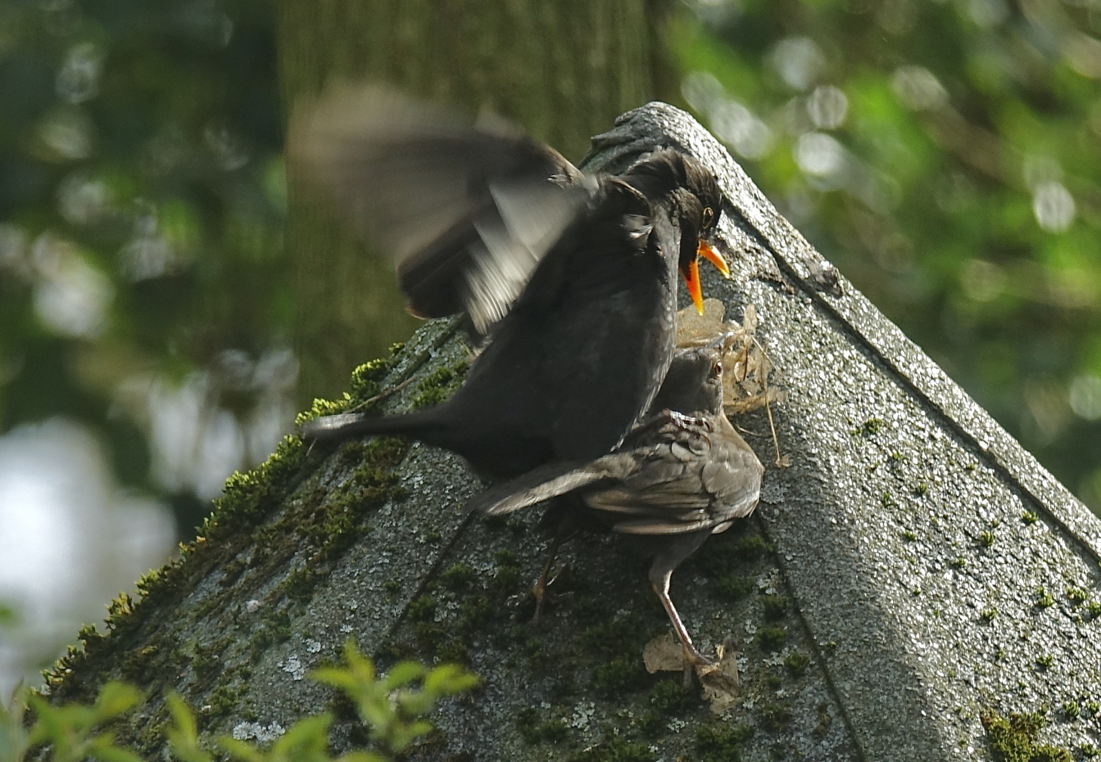 Ma Merel is druk met nestmateriaal en Pa met de versteviging van de paarband.