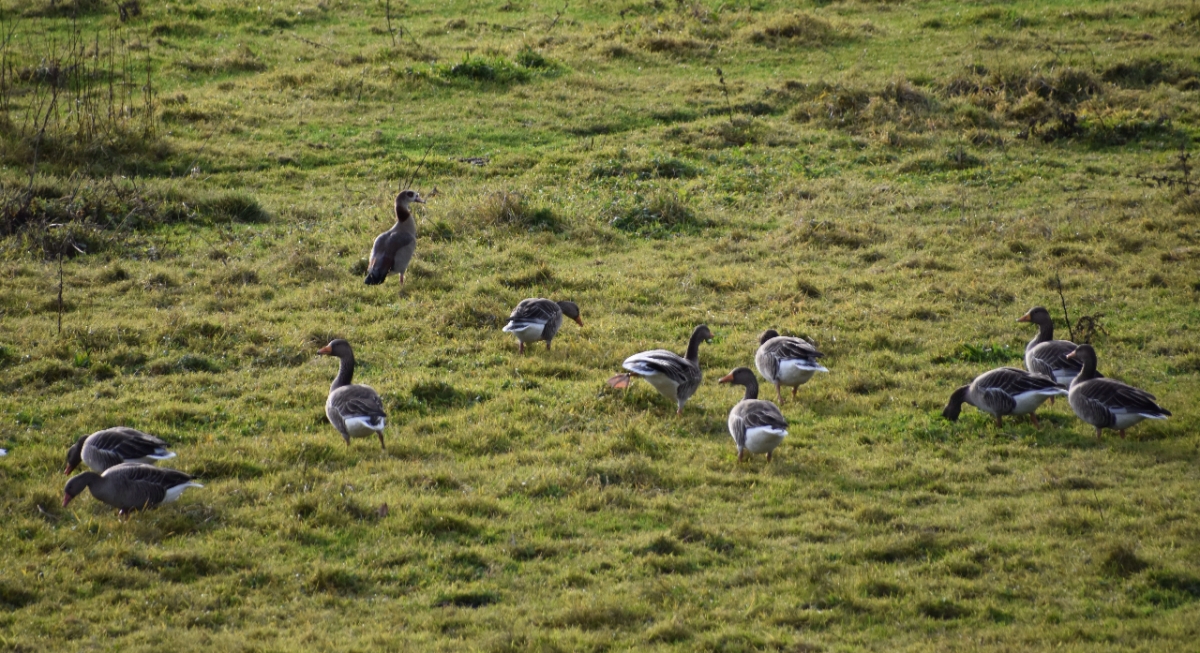 de grauwe ganzen in de uiterwaarden van de Lek.