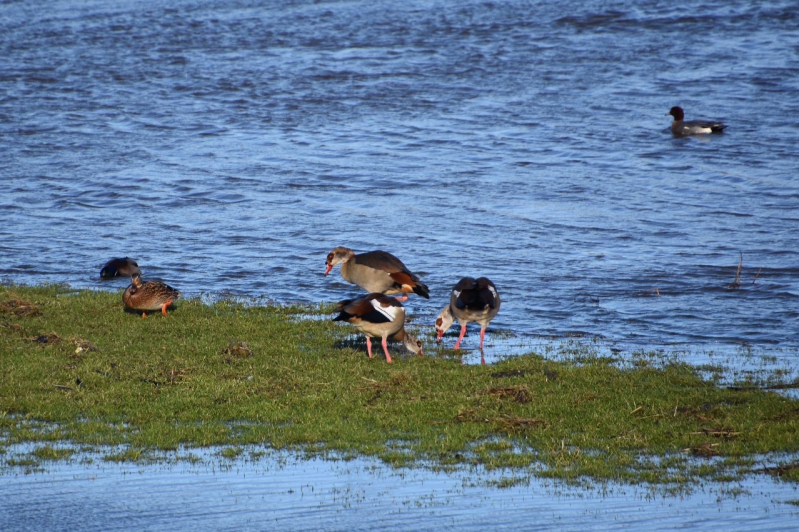 Op het grasland in de uiterwaarden waar het hoge water niet veel gras vrij liet.