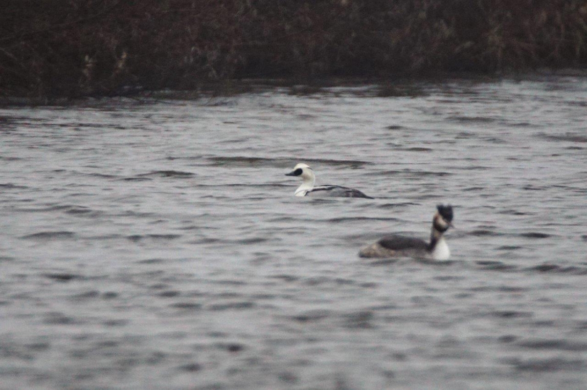 Hier was ik voor op pad gegaan vanmorgen het is de kleinste van de zaagbekken Maar wat Ozo alert bij het minste verdachte geluid gaan ze op de wieken.Ik moet nog maar eens terug om het nogmaals te proberen.