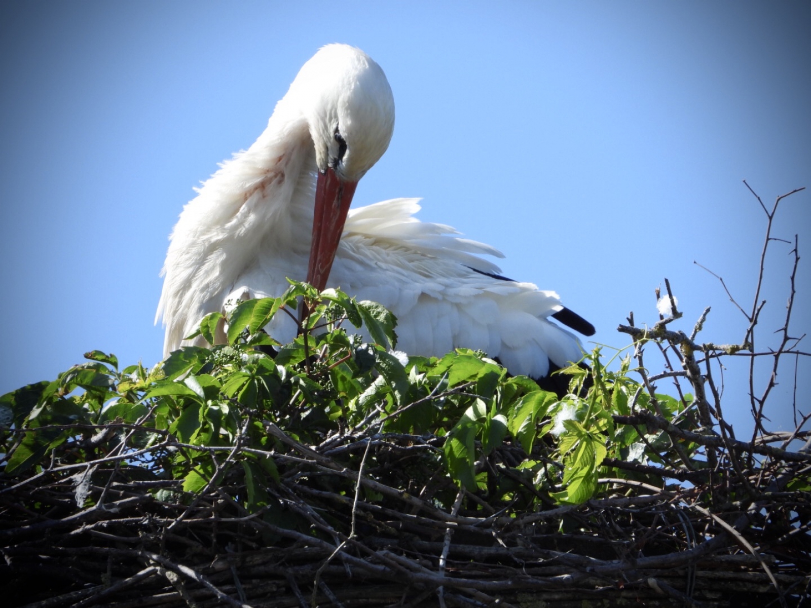 Op een heerlijke zomerdag in juni geniet deze ooievaar van de zon in het prachtige Retranchement in Zeeuws Vlaanderen.