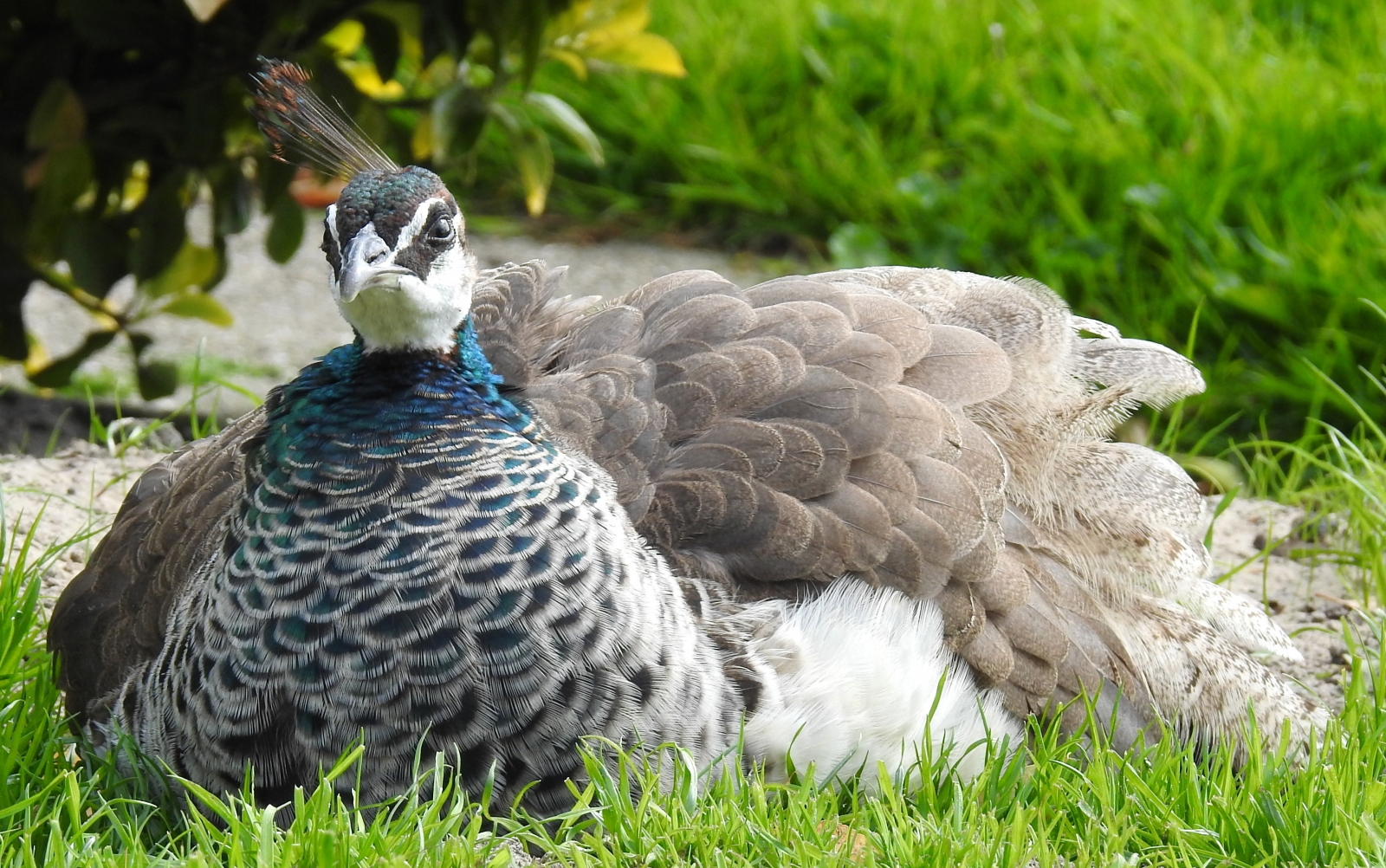 Deze zit er relax bij, ik was vorige week bij een kasteel in Engeland daar zaten er veel , allemaal hun mooie staart te showen.