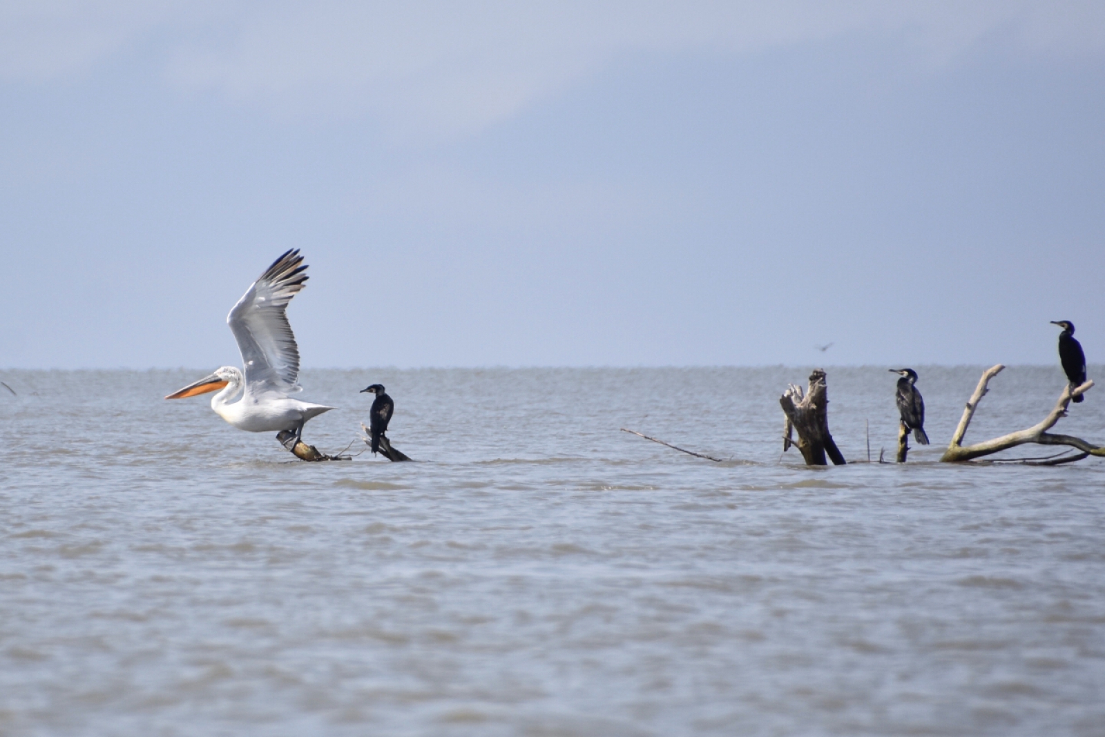Je ziet hier goed hoe groot hij is in verhouding tot de Aalscholvers, die al niet klein zijn !! Mooie foto's !!
