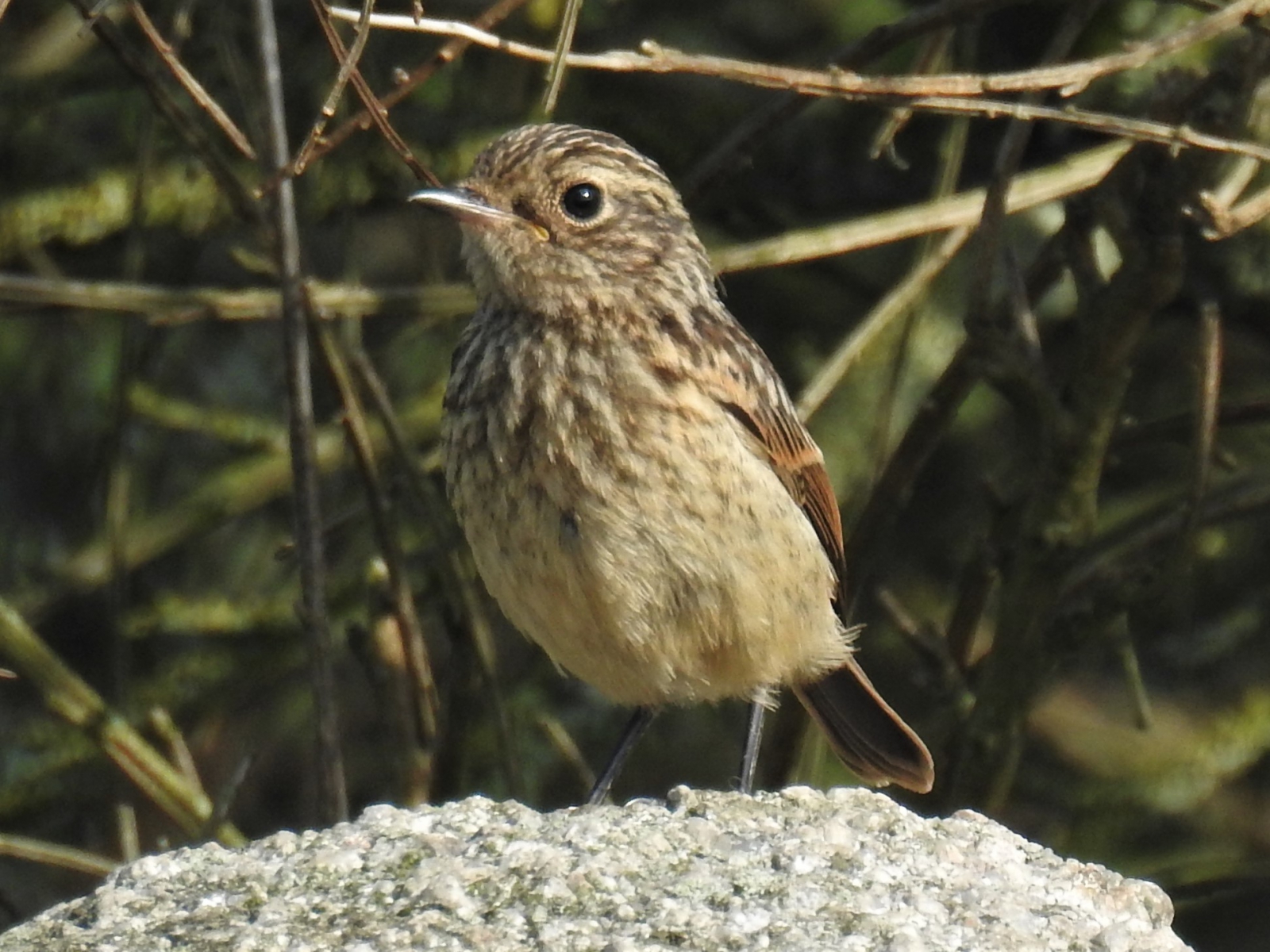 De roodborsttapuit is een vrij kleine zangvogel die 11,5 tot 13 cm lang is. Het mannetje heeft in de broedtijd een zwarte kop en duidelijke witte vlekken op de zijkanten van de hals en een oranje borst, waarbij het oranje tot aan de buik reikt. De bovenzijde is donkerbruin. Het vrouwtje is van boven bruin gekleurd, ook op de kop daar waar het mannetje zwart is. Ze mist de duidelijke witte halsvlekken en ze is minder uitbundig oranje gekleurd op de borst. Onvolwassen vogels zijn ook bruin gekleurd met een soort donkerbruin schubbenpatroon.[2] De roodborsttapuit is een insecteneter.
