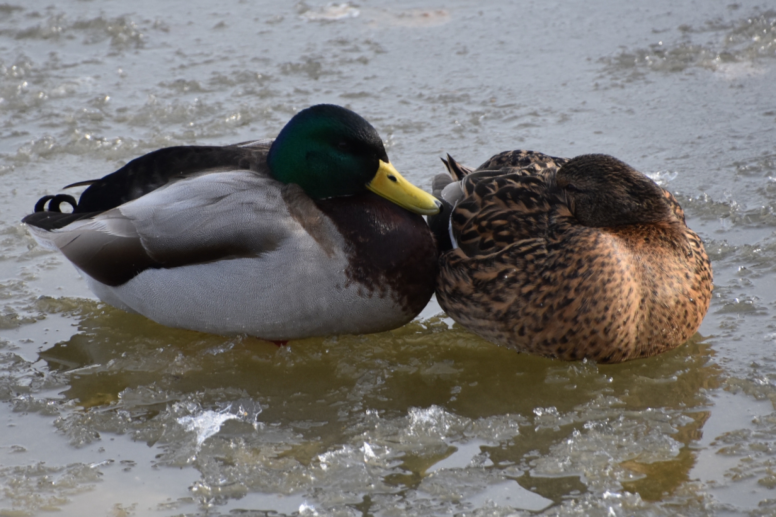 Leuke foto's van de eendjes op het ijs. Dit is een mooi valentijns koppel !!