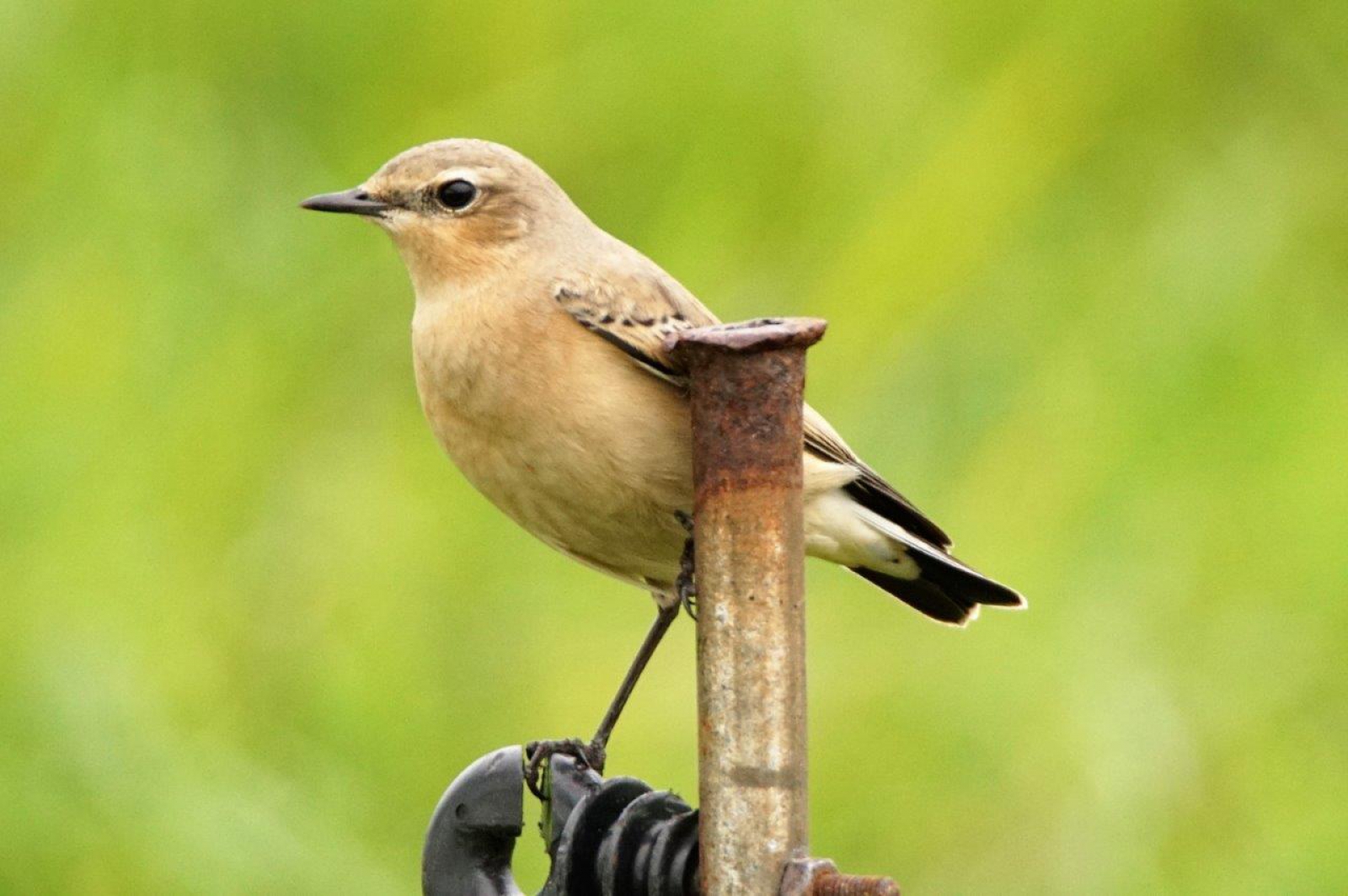 De tapuit leunt mooi een beetje tegen de weide paal om het evenwicht te bewaren