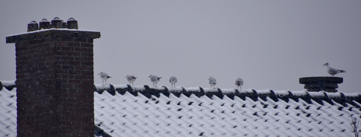 Vanmorgen op het dak van een appartementengebouw.