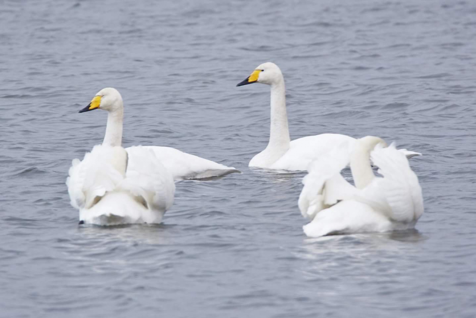 Twee knobbel en 2wilde zwanen gebroederlijk bij elkaar