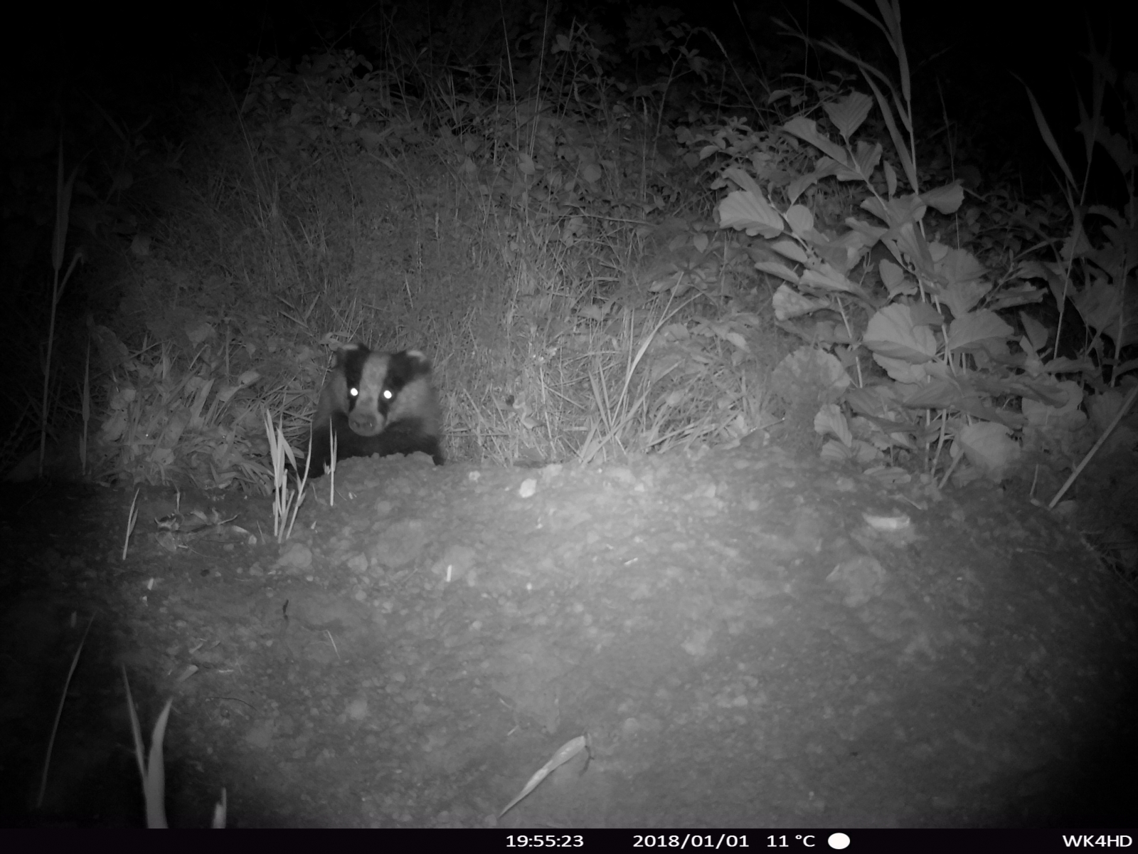Deze das in de Onlanden nabij Roderwolde heeft nog wat argwaan om z'n burcht te verlaten. Blijkbaar speelt de wildcamera daarbij toch een rol.