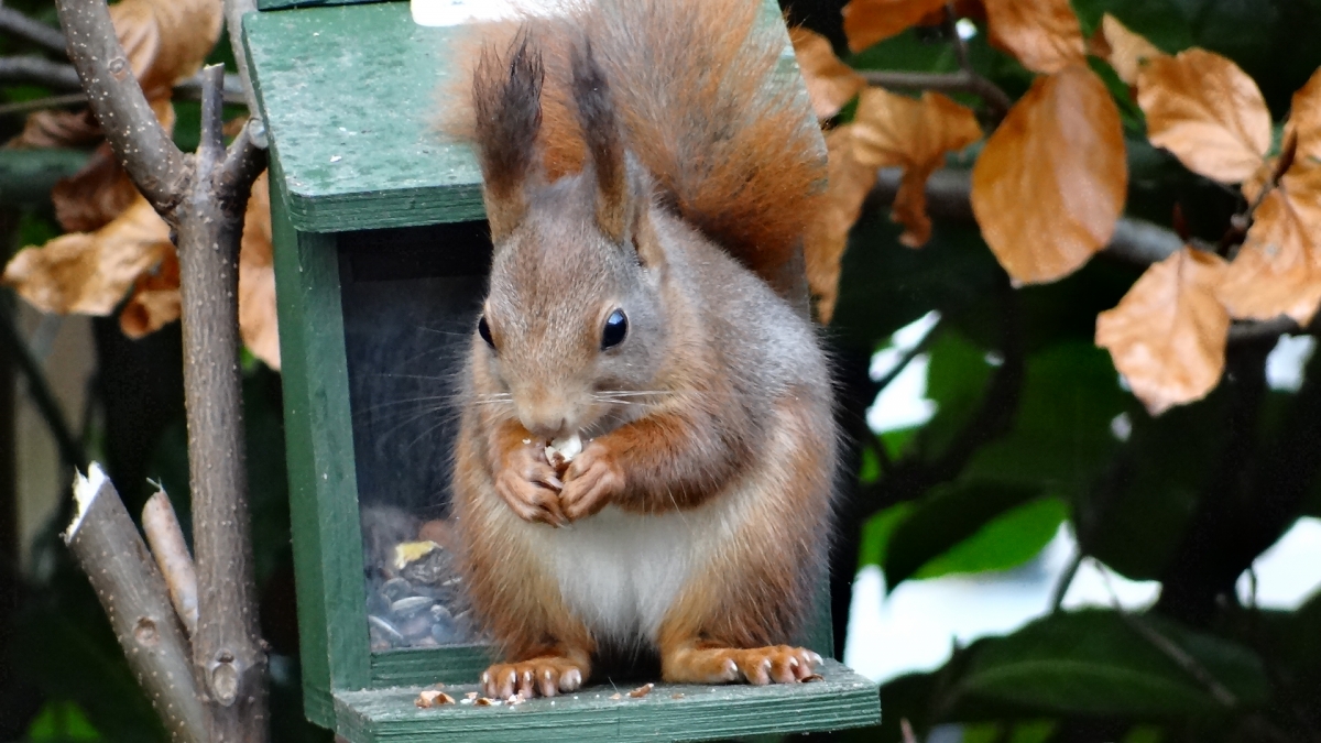 Deze winter hebben we Eekhoorns te gast in onze tuin, geweldig grappige beestjes. Er is volop eten voor ze, overal hebben ze onze walnoten verstopt en ter aanvulling trakteer ik ze ook op speciaal eekhoorn voedsel wat in een voederkastje ligt. Leuk dat ze zelf ontdekt hebben hoe dit kastje geopend moet worden om bij deze lekkernij te komen.