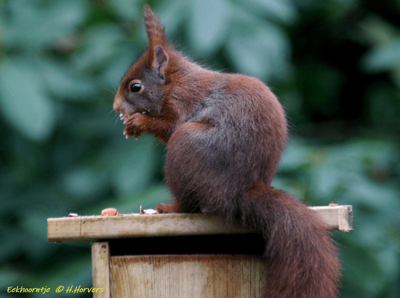 Eekhoorntje op voerhuisje. Was in de gelegenheid om er wat plaatjes van te schieten, en wilde ze graag met jullie delen ....