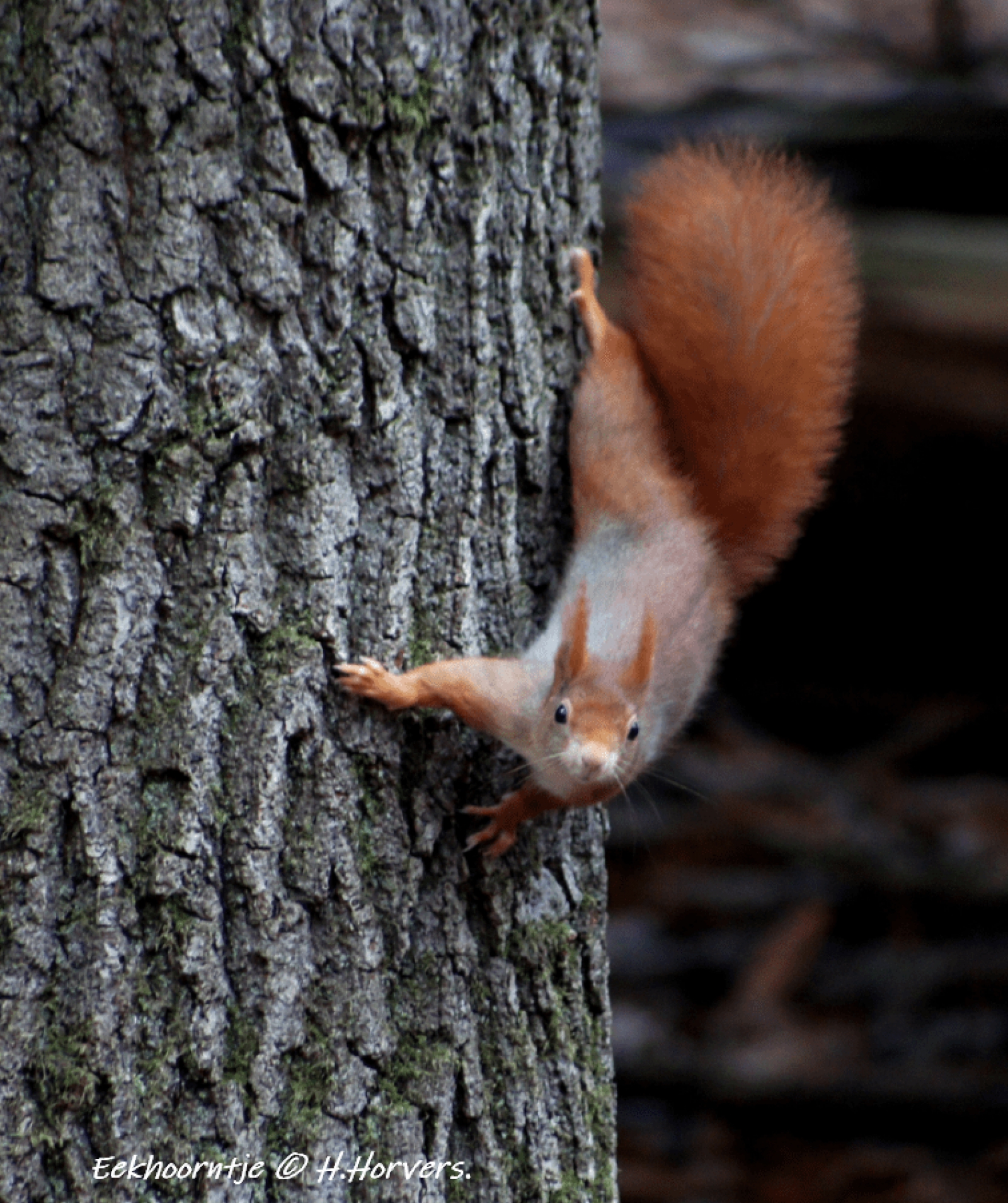 Heel mooie eekhoorn serie, hier is zijn prachtige staart goed te zien.