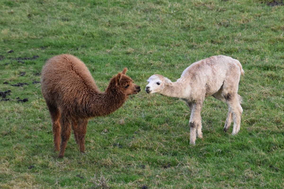 Onderaan de Lekdijk een aantal alpaca's in de wei. Dit kleintje is nog aardig jong, denk ik.