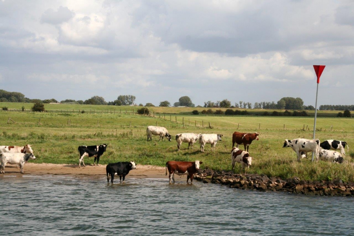 Af en toe even in het water. Ergens langs de Nederrijn.
