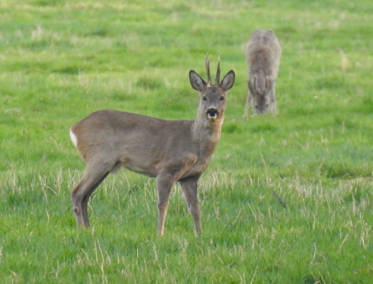 Tegen de avond kwamen er 5 reeën tevoorschijn om te grazen op een weitje.