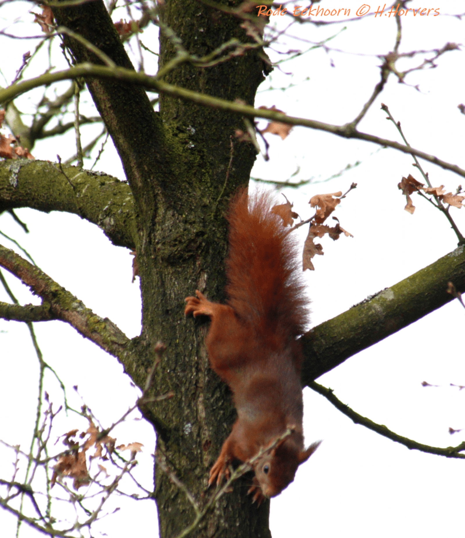Rode Eekhoorn. Deze kwam de boom uit rennen ...