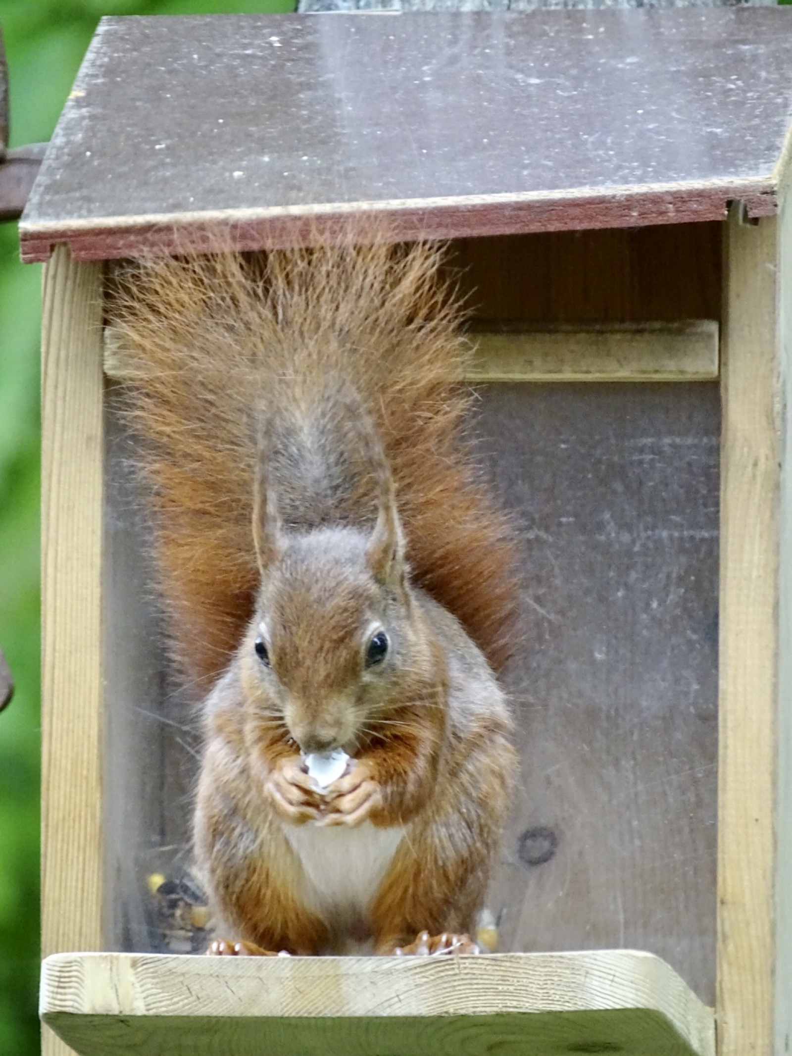 We hebben een voederhuisje gemaakt voor Harrie. Met speciaal eekhoornvoer. Wat kan ie er lekker van smullen. We blijven er naar kijken. Inmiddels hebben we Harrie ook kennis laten maken met YouTube: https://youtu.be/SoM0clbub90
