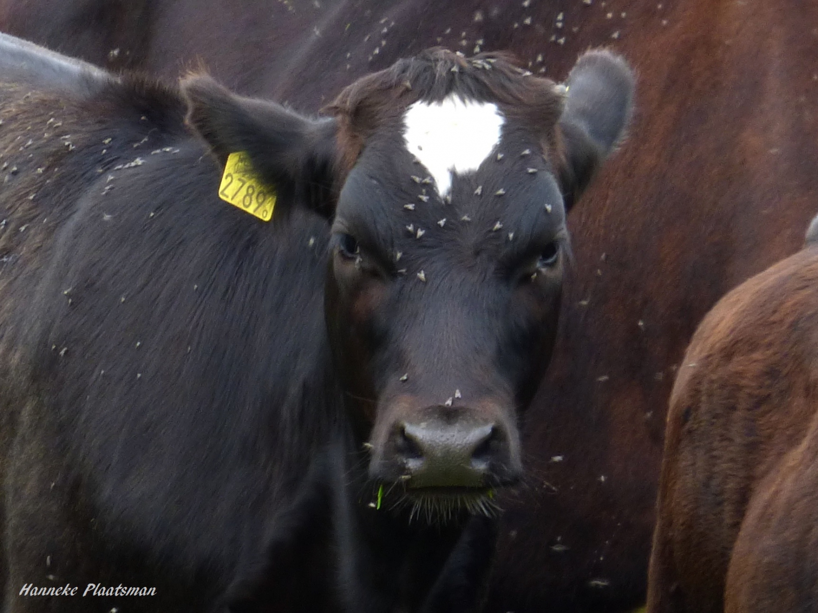 Het kalfje is duidelijk heel aantrekkelijk voor de vliegen. Leuke opname van gemaakt.