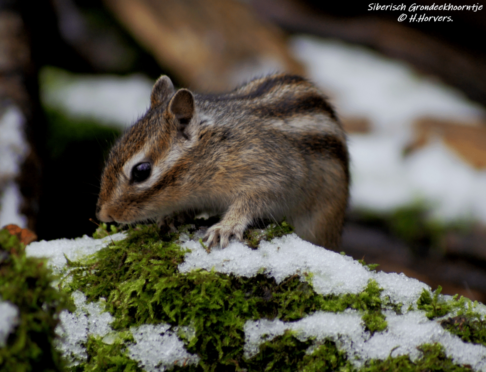 Siberisch Grondeekhoorntje in de sneeuw (17-01-21021 - Wandelbos -Tilburg)
