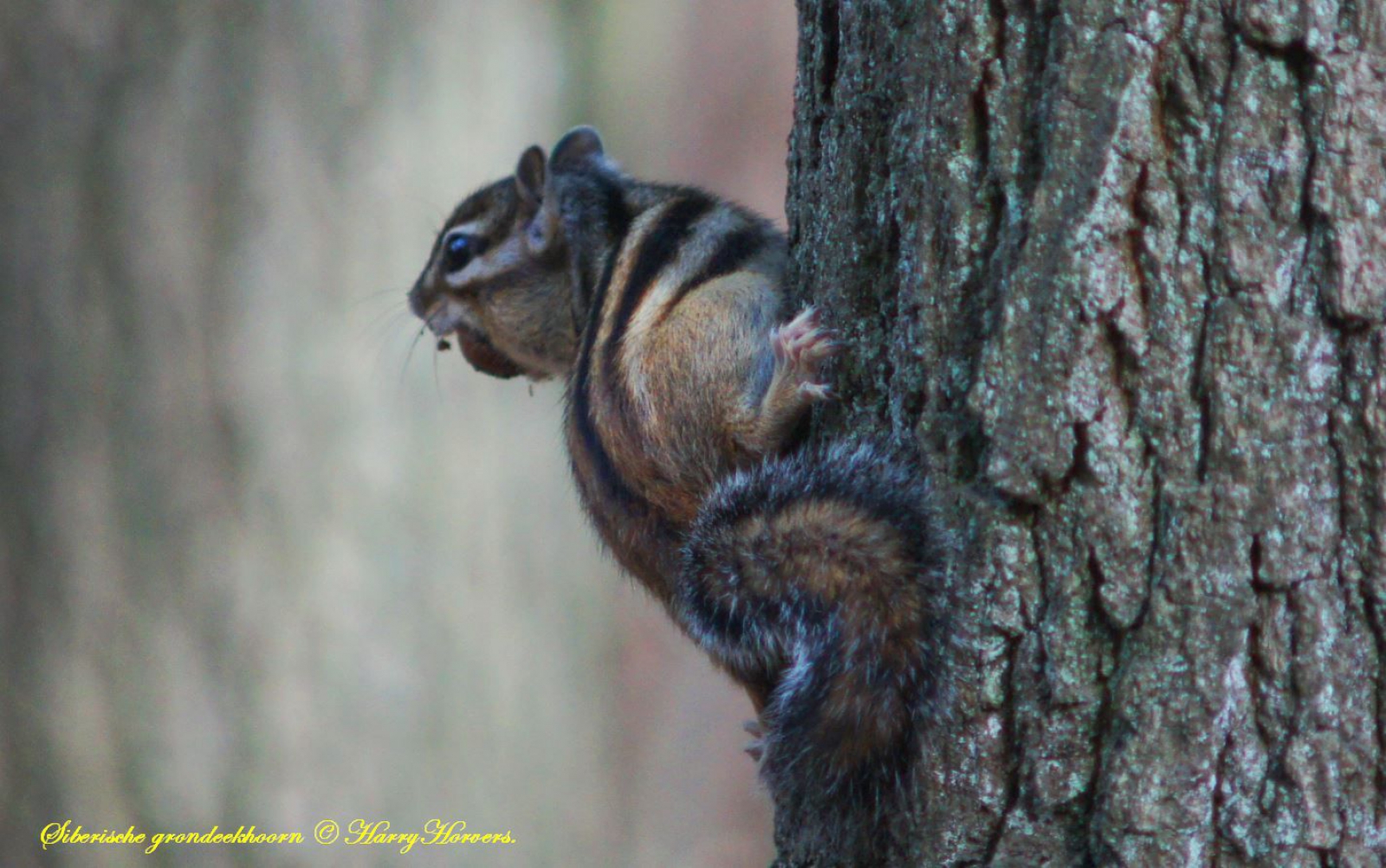 uitheemse soort - Siberische grondeekhoorn met voedsel in zijn bek