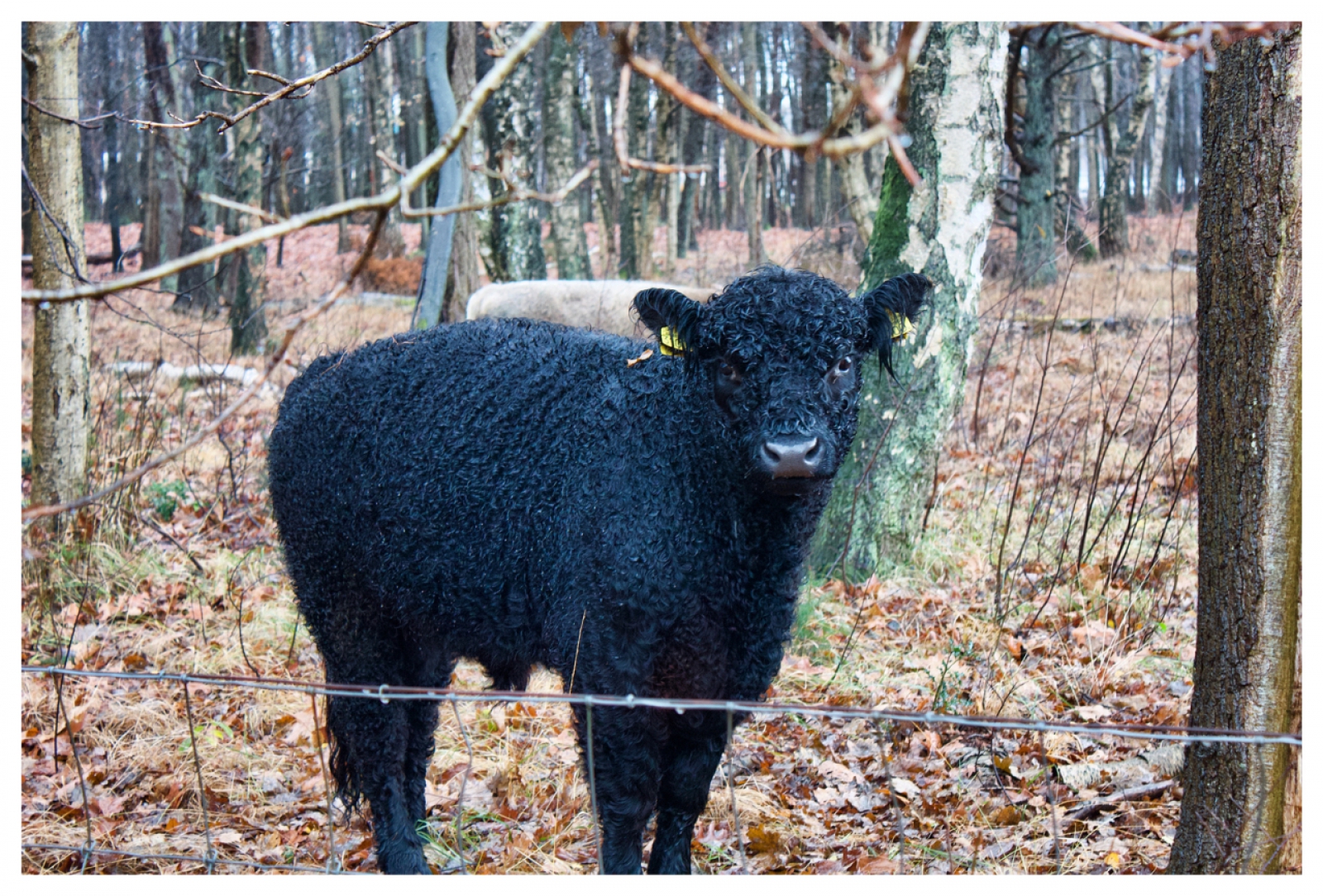 Ook deze runderen waren blij dat de stortbui weer over was, en ze kwamen langzaam uit hun schuilplek bij het was meer. Deze was nieuwsgierig wat ik stond te doen.